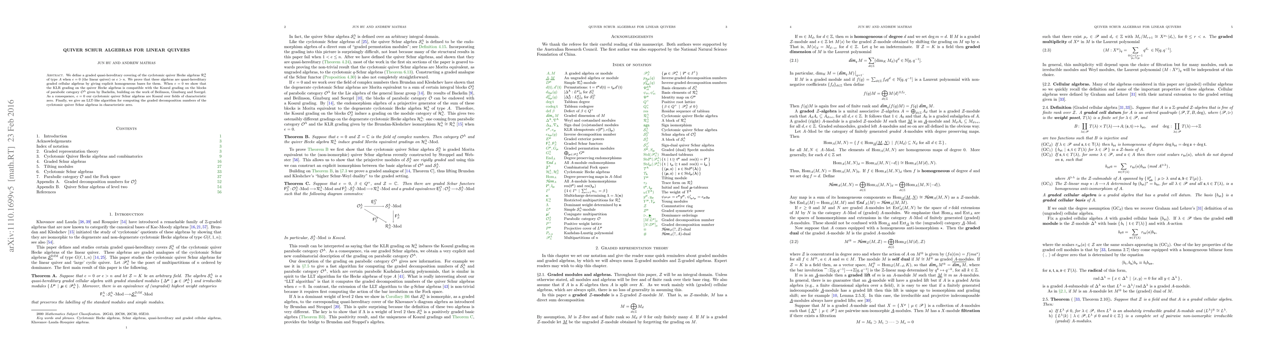 We define a graded quasi-hereditary covering for the cyclotomic quiver Hecke algebras $\mathcal{R}^\Lambda_n$ of type $A$ when $e=0$ (the linear quiver) or $e\ge n$. We show that these algebras are quasi-hereditary graded cellular algebras by giving explicit homogeneous bases for them. When $e=0$ we show that the KLR grading on the quiver Hecke algebras is compatible with the gradings on parabolic category $\mathcal{O}$ previously introduced in the works of Beilinson, Ginzburg and Soergel and Backelin. As a consequence, we show that when $e=0$ our graded Schur algebras are Koszul over field of characteristic zero. Finally, we give an LLT-like algorithm for computing the graded decomposition numbers of the quiver Schur algebras in characteristic zero when $e=0$.