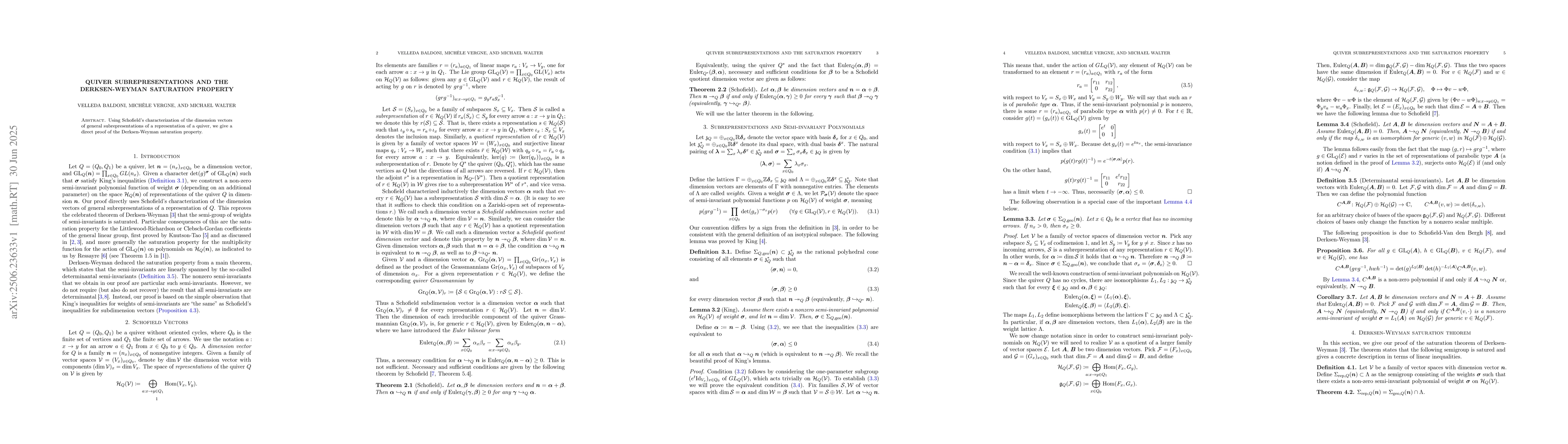 This paper offers a direct proof of the Derksen-Weyman saturation property using Schofield's characterization of dimension vectors for general quiver subrepresentations. It simplifies understanding of subrepresentation dimensions in quiver representations.