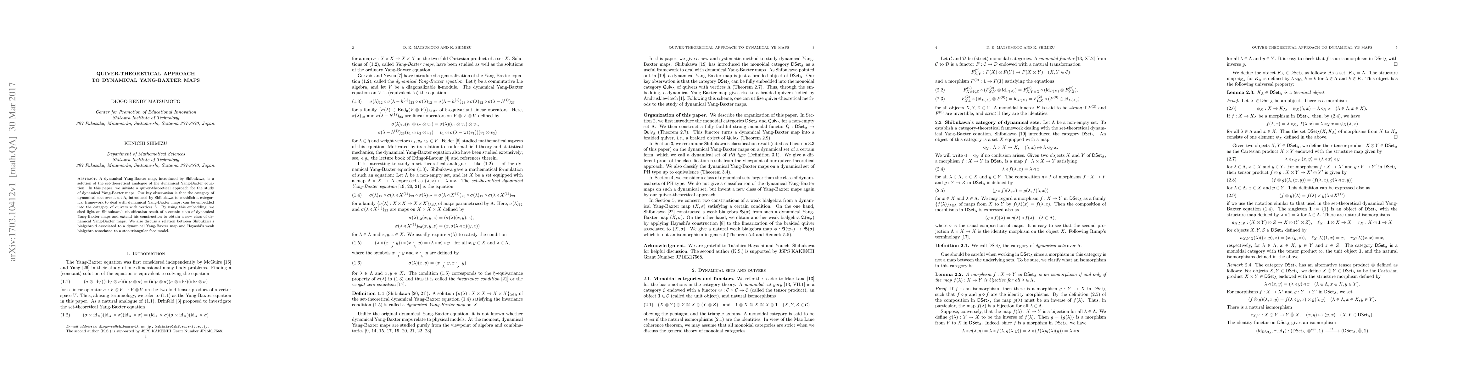 This paper introduces a quiver-theoretical framework for studying dynamical Yang-Baxter maps, embedding Shibukawa's category of dynamical sets into the category of quivers. It extends Shibukawa's classification and constructs a new class of dynamical Yang-Baxter maps, while also linking Shibukawa's bialgebroid to Hayashi's weak bialgebra.