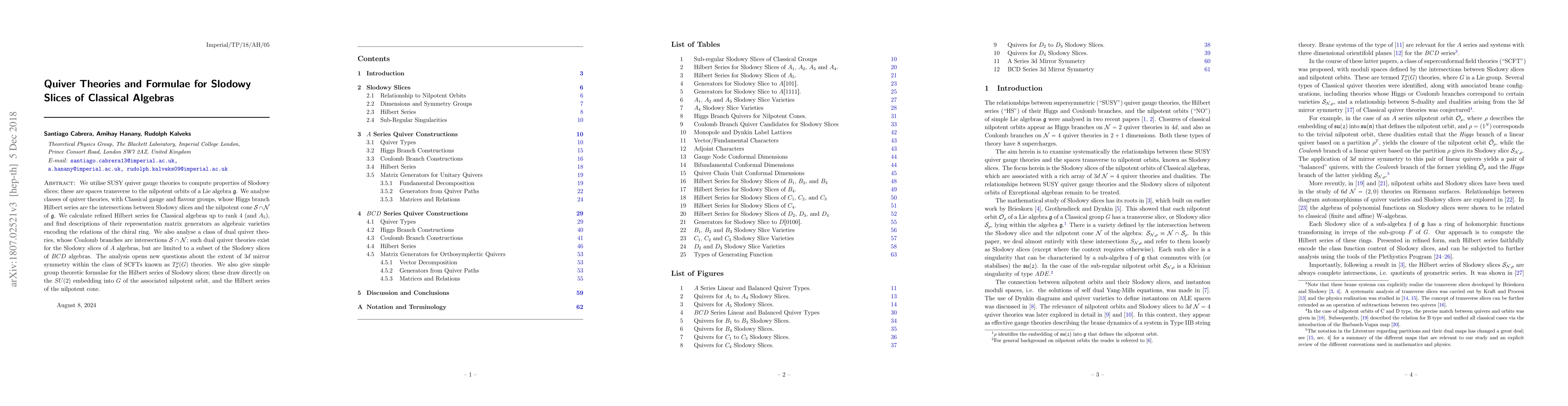 This paper utilizes SUSY quiver gauge theories to compute properties of Slodowy slices in classical Lie algebras, providing refined Hilbert series and representation matrix generators for Classical algebras up to rank $4$. It also explores dual quiver theories and raises questions about $3d$ mirror symmetry in $T_\sigma^\rho(G)$ theories, offering group theoretic formulae for the Hilbert series of Slodowy slices.
