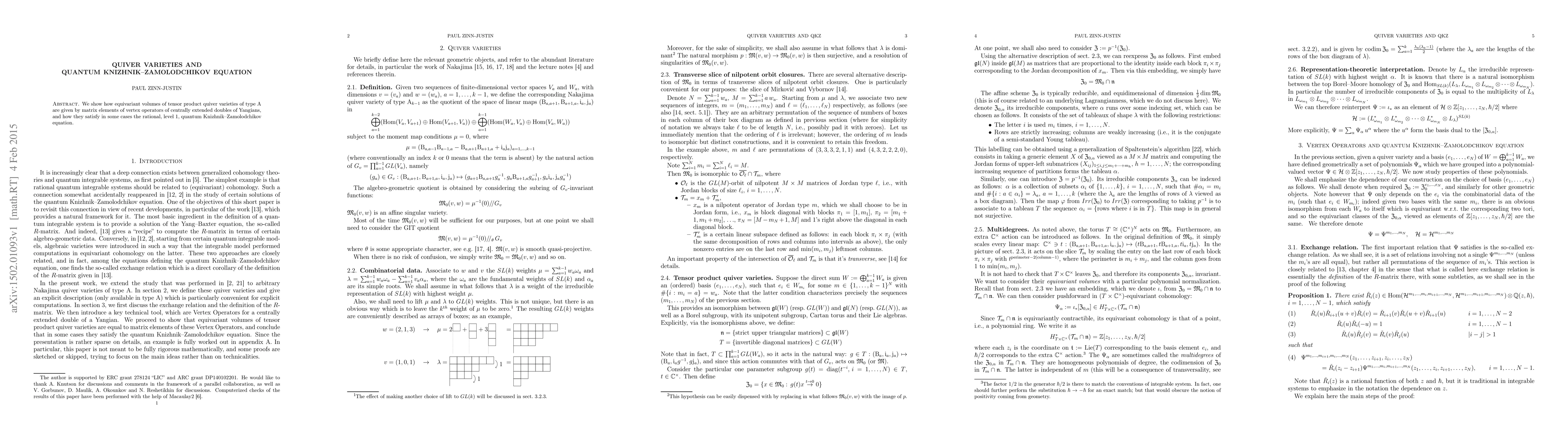 We show how equivariant volumes of tensor product quiver varieties of type A are given by matrix elements of vertex operators of centrally extended doubles of Yangians, and how they satisfy in some cases the rational, level 1, quantum Knizhnik--Zamolodchikov equation.