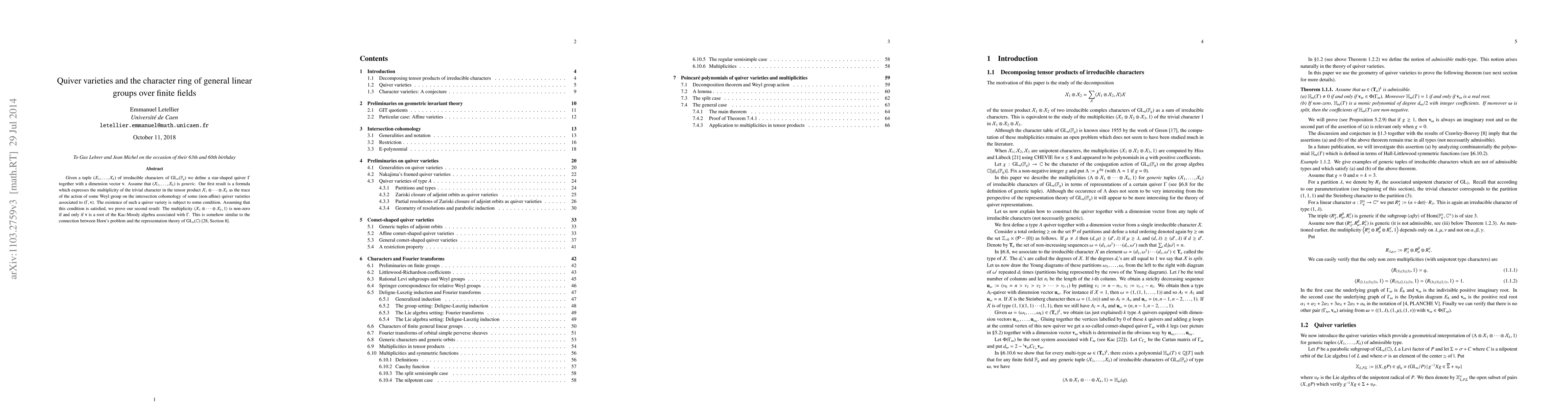Summary: The paper investigates the character ring of general linear groups over finite fields, demonstrating that its "generic" part can be characterized through quiver representations. This connection provides a new perspective on the representation theory of these groups.