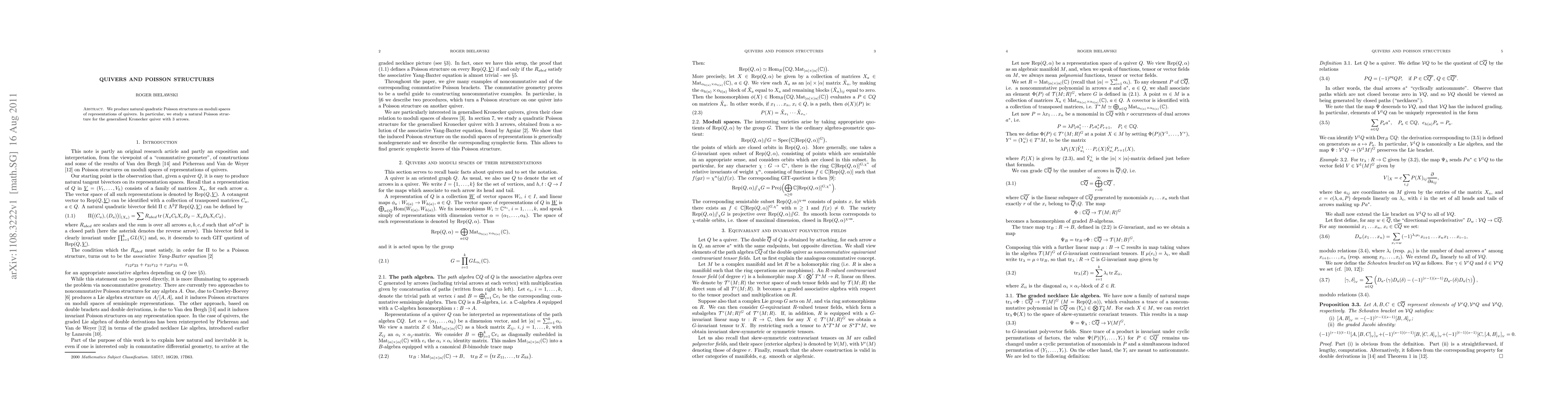 We produce natural quadratic Poisson structures on moduli spaces of representations of quivers. In particular, we study a natural Poisson structure for the generalised Kronecker quiver with 3 arrows.