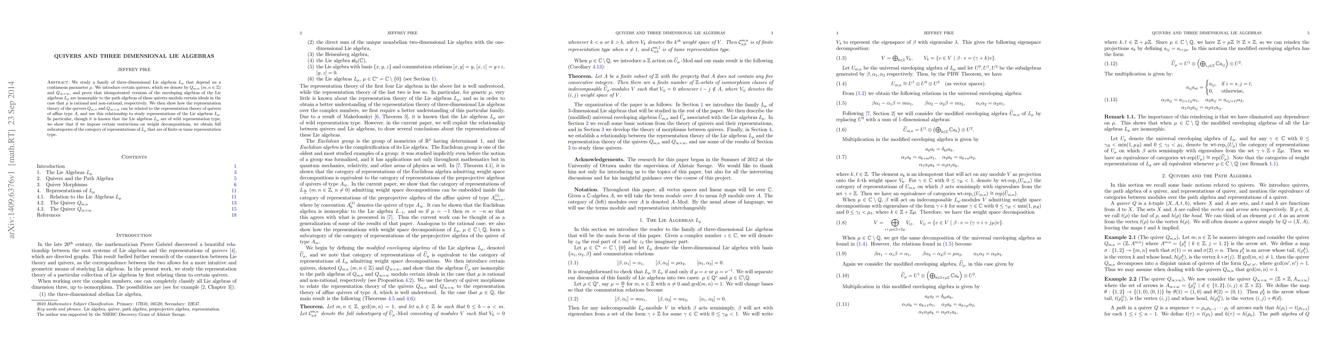 This paper investigates three-dimensional Lie algebras $L_\mu$ parameterized by $\mu$ and demonstrates their connection to specific quivers. It proves that idempotented versions of their enveloping algebras are isomorphic to path algebras of these quivers, facilitating representation theory studies, which reveal finite or tame representation types under certain restrictions.