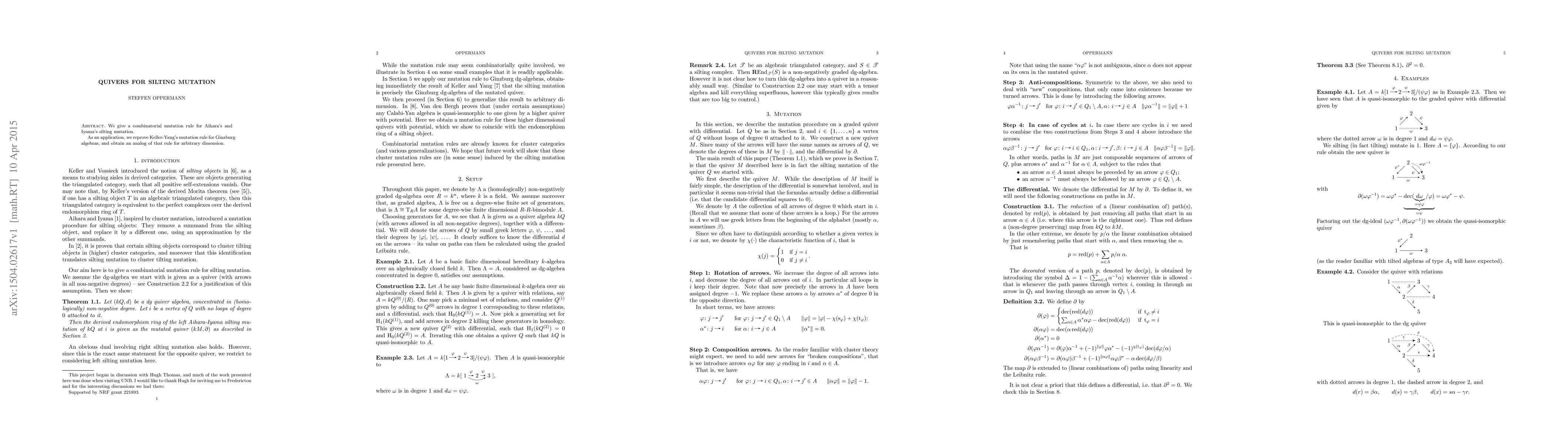 Researchers developed a combinatorial mutation rule for silting mutations in Ginzburg algebras, reprovining Keller-Yang's rule with an analog for arbitrary dimension.