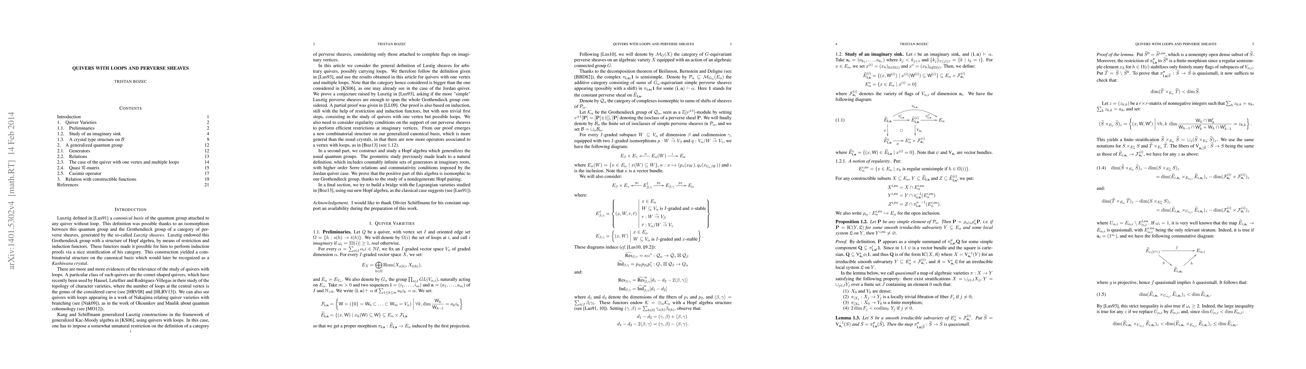 In this article we consider the general definition of Lustig sheaves for arbitrary quivers, possibly carrying loops. We answer a conjecture raised by Lusztig asking if the more "simple" Lusztig perverse sheaves are enough to span the whole Grothendieck group usually built with these sheaves. Our proof is based on induction, with the help of restriction and induction functors, but with non trivial first steps, consisting in the study of quivers with one vertex but possible loops. We also need to consider regularity conditions on the support of our perverse sheaves to perform efficient restrictions at imaginary vertices. From our proof emerges a new combinatorial structure on our generalized canonical basis, which is more general than the usual crystals, in that there are now more operators associated to a vertex with loops. In a second part, we construct and study a Hopf algebra which generalizes the usual quantum groups. The geometric study previously made leads to a natural definition, which includes countably infinite sets of generators at imaginary roots, with higher order Serre relations and commutativity conditions imposed by the Jordan quiver case. We finally prove that the positive part of this algebra is isomorphic to our Grothendieck group, thanks to the study of a nondegenerate Hopf pairing.
