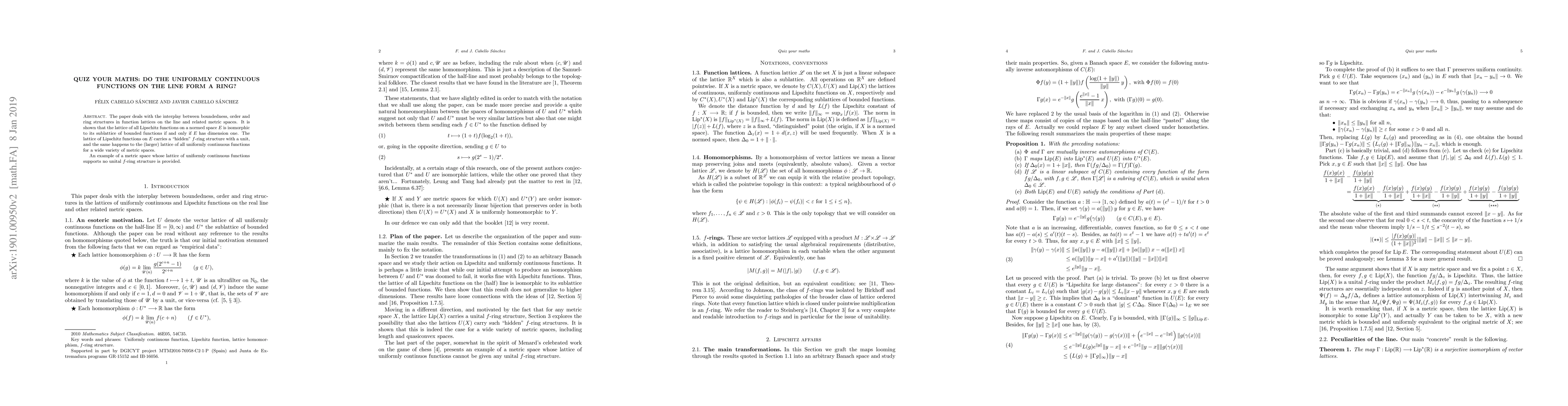 The paper explores the ring structure of uniformly continuous functions on the line, revealing that such functions form a ring under certain conditions. It also demonstrates that while Lipschitz functions on a normed space $E$ form an isomorphic lattice with bounded functions only when $E$ is one-dimensional, uniformly continuous functions can exhibit a "hidden" $f$-ring structure in various metric spaces, except for specific cases where no unital $f$-ring structure exists.