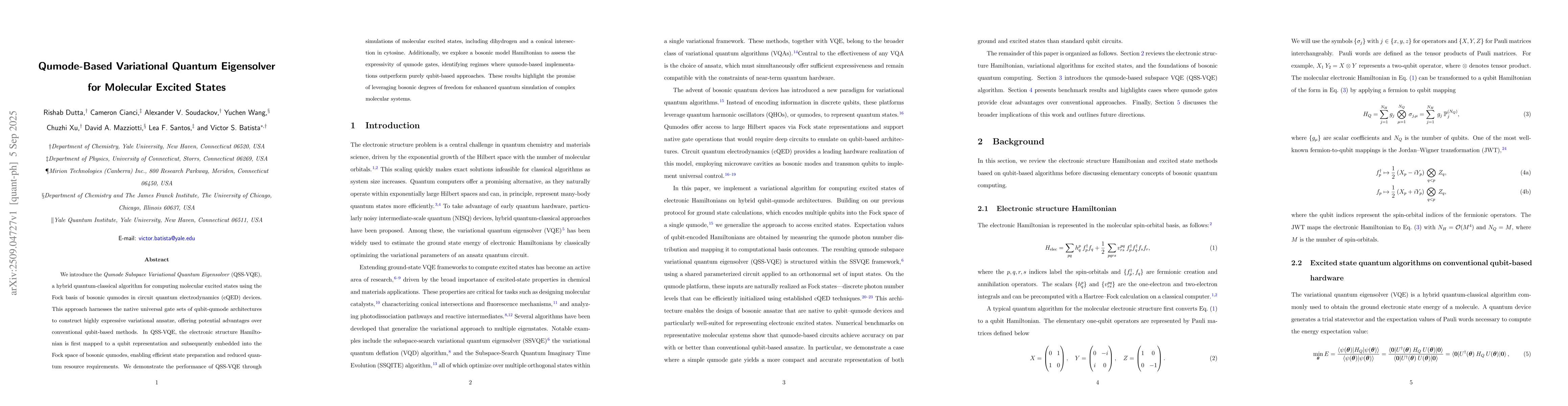 We introduce the Qumode Subspace Variational Quantum Eigensolver (QSS-VQE), a hybrid quantum-classical algorithm for computing molecular excited states using the Fock basis of bosonic qumodes in circuit quantum electrodynamics (cQED) devices. This approach harnesses the native universal gate sets of qubit-qumode architectures to construct highly expressive variational ansatze, offering potential advantages over conventional qubit-based methods. In QSS-VQE, the electronic structure Hamiltonian is first mapped to a qubit representation and subsequently embedded into the Fock space of bosonic qumodes, enabling efficient state preparation and reduced quantum resource requirements. We demonstrate the performance of QSS-VQE through simulations of molecular excited states, including dihydrogen and a conical intersection in cytosine. Additionally, we explore a bosonic model Hamiltonian to assess the expressivity of qumode gates, identifying regimes where qumode-based implementations outperform purely qubit-based approaches. These results highlight the promise of leveraging bosonic degrees of freedom for enhanced quantum simulation of complex molecular systems.