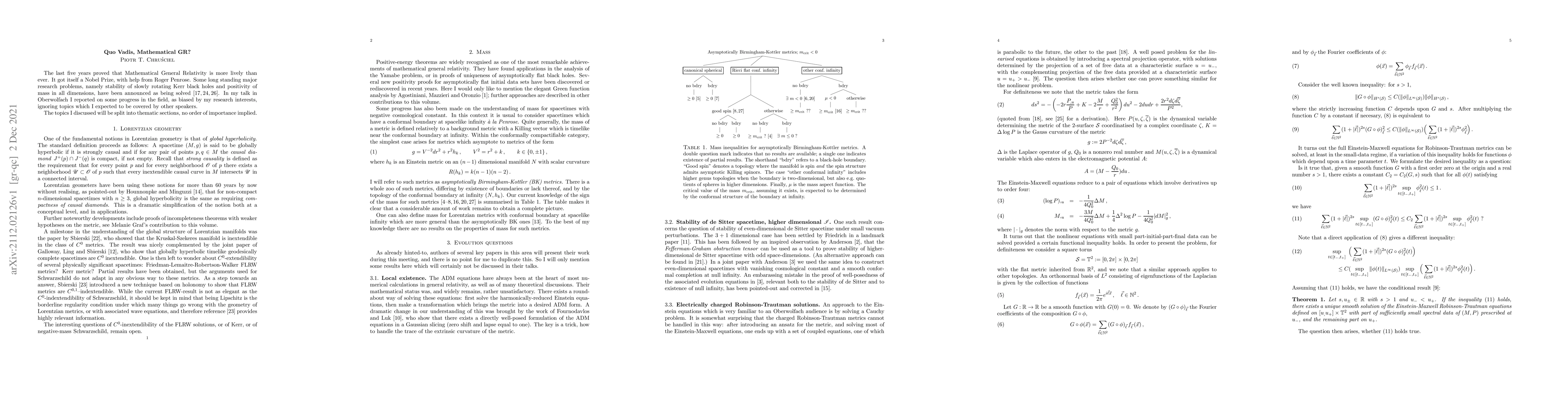 Summary: This paper reviews key developments in mathematical general relativity, focusing on selected topics that highlight advancements and current challenges in the field, providing insights into the future direction of research.