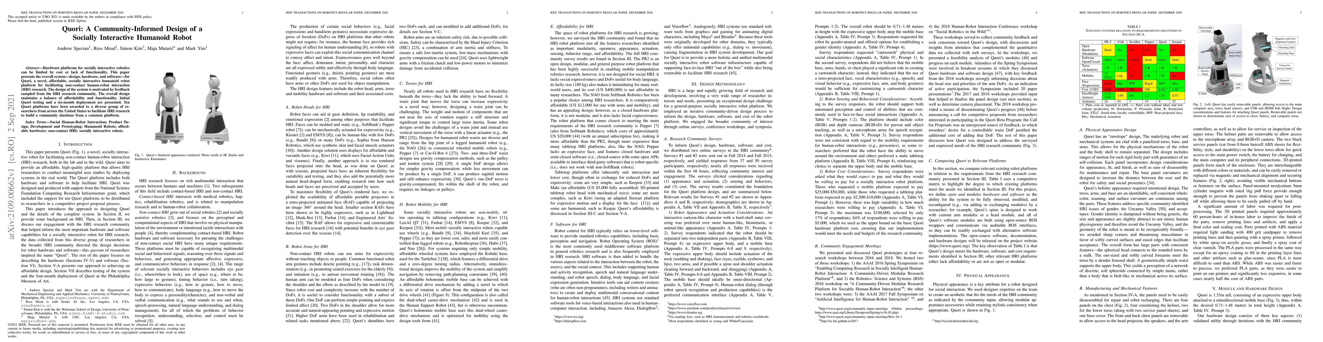This paper introduces Quori, an affordable, socially interactive humanoid robot designed to facilitate non-contact human-robot interaction research. The design, informed by community feedback, balances cost and functionality, and initial testing and deployment results are presented.