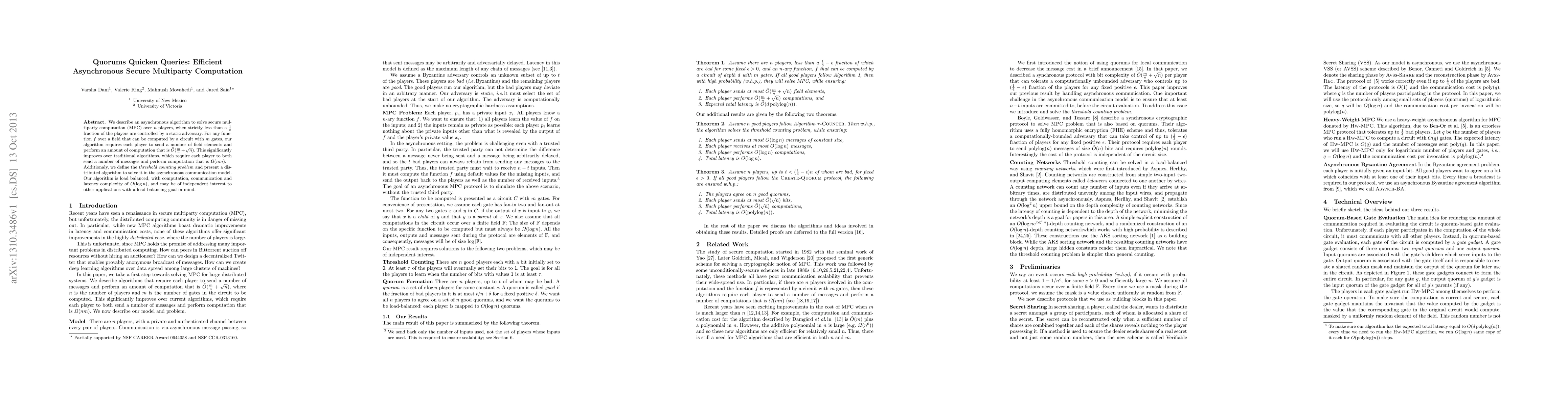 We describe an asynchronous algorithm to solve secure multiparty computation (MPC) over n players, when strictly less than a 1/8 fraction of the players are controlled by a static adversary. For any function f over a field that can be computed by a circuit with m gates, our algorithm requires each player to send a number of field elements and perform an amount of computation that is O (m/n + \sqrt{n}). This significantly improves over traditional algorithms, which require each player to both send a number of messages and perform computation that is {\Omega}(nm). Additionally, we define the threshold counting problem and present a distributed algorithm to solve it in the asynchronous communication model. Our algorithm is load balanced, with computation, communication and latency complexity of O(log n), and may be of independent interest to other applications with a load balancing goal in mind.