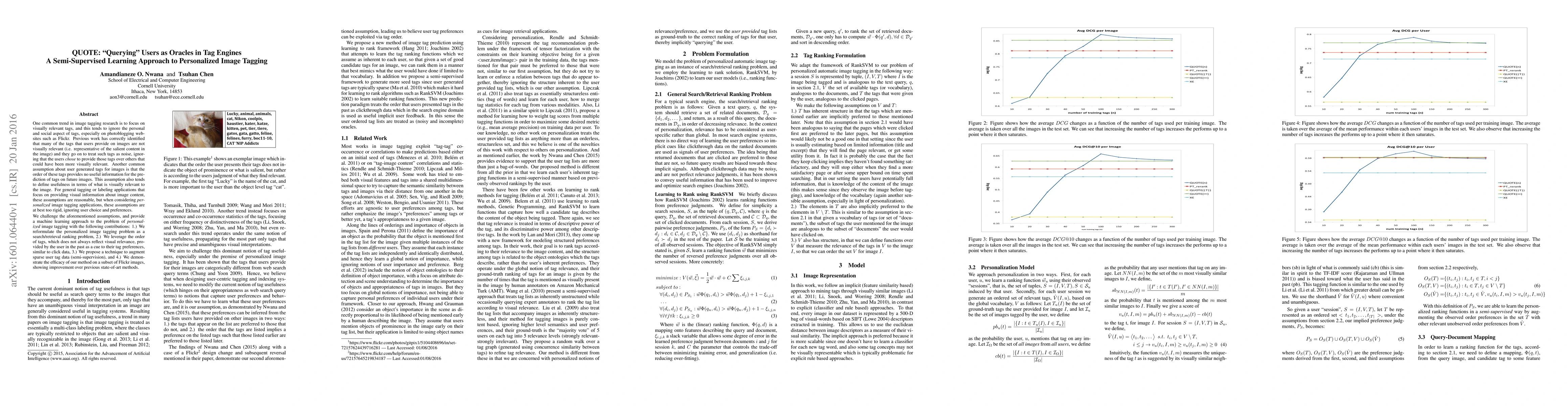 This paper proposes a semi-supervised learning approach for personalized image tagging that considers user-provided tags and their order, challenging the assumption that only visually relevant tags matter. The method reformulates tagging as a ranking problem, leveraging user tag preferences and improving upon previous methods using a subset of Flickr images.