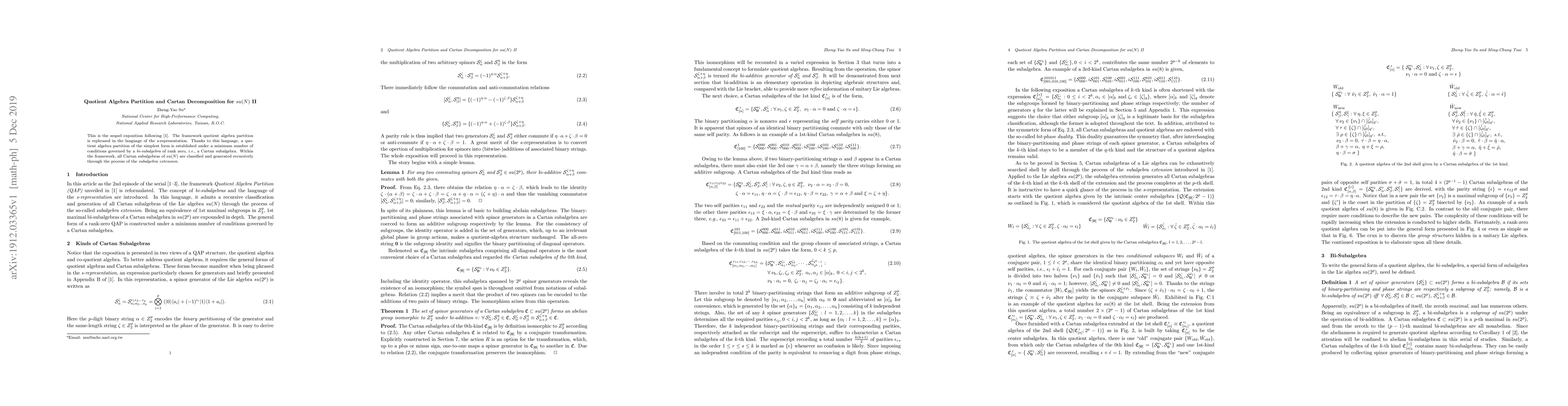 This paper builds on previous work to reframe the quotient algebra partition using s-representation, establishing a simplified partition under minimal conditions via a Cartan subalgebra. It classifies and recursively generates all Cartan subalgebras of su(N) through subalgebra extension.