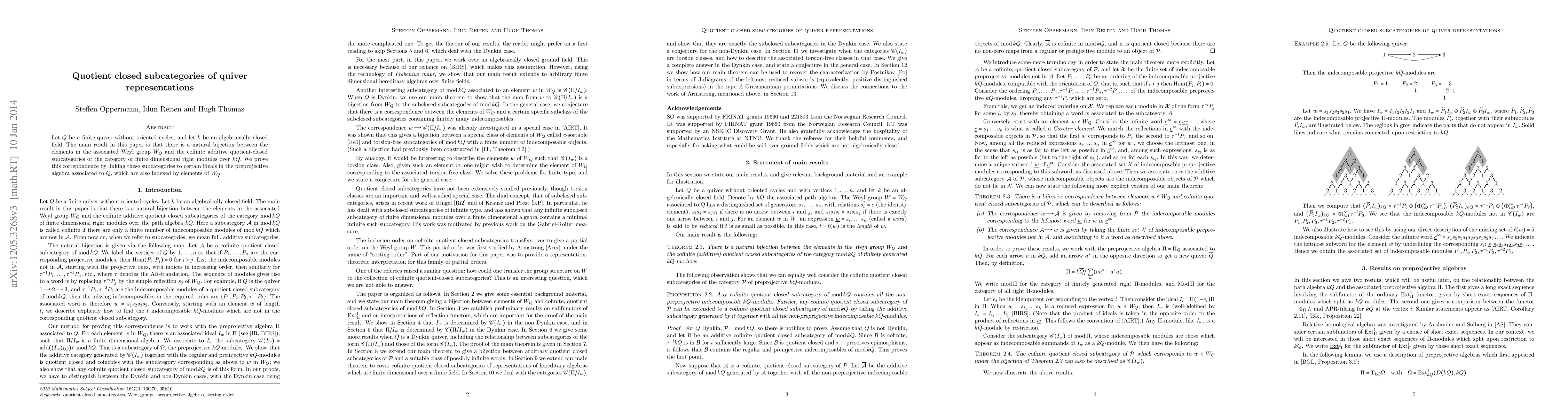 This paper establishes a bijection between elements in the Coxeter group W_Q of a finite acyclic quiver Q and cofinite additive quotient-closed subcategories of kQ-modules, proving this through a connection to ideals in the preprojective algebra associated with Q.
