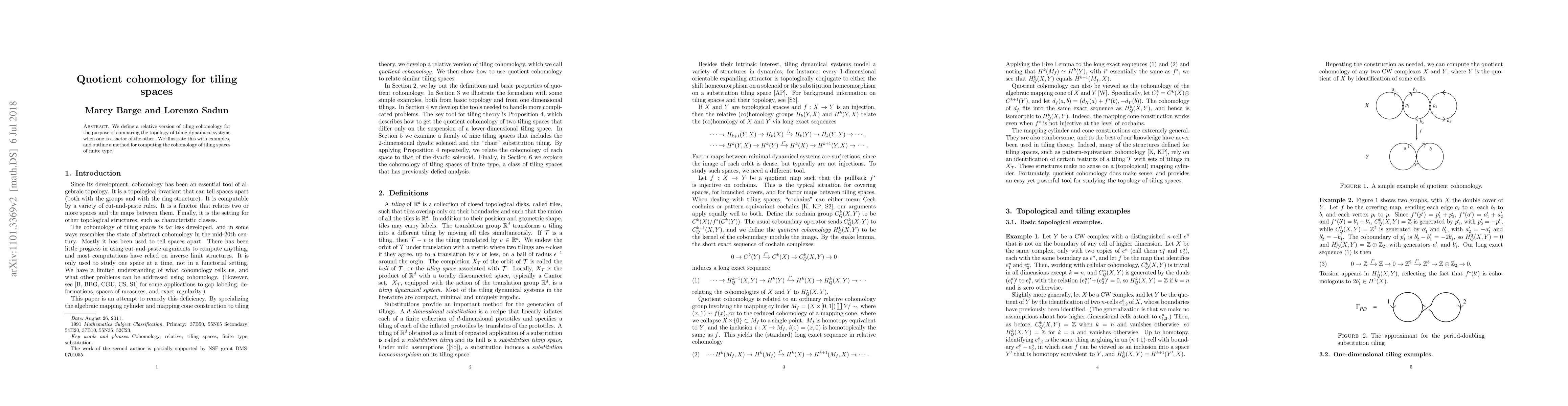 This paper introduces a relative tiling cohomology to compare the topology of tiling spaces where one is a factor of another. It provides examples and outlines a method for computing the cohomology of finite type tiling spaces.