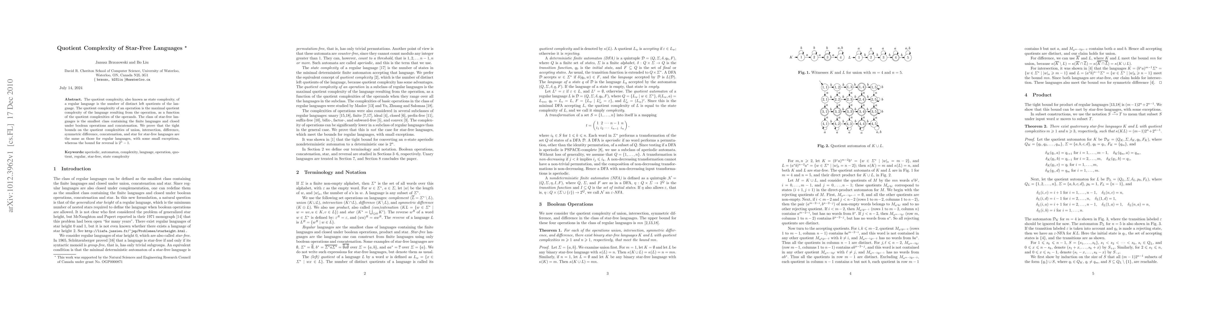 The paper investigates the quotient complexity of star-free languages, finding tight bounds on operations like union and intersection similar to those for regular languages, with a notable exception for reversal having a complexity of 2^n-1. The key focus is on how these complexities relate to the operations performed on star-free languages.