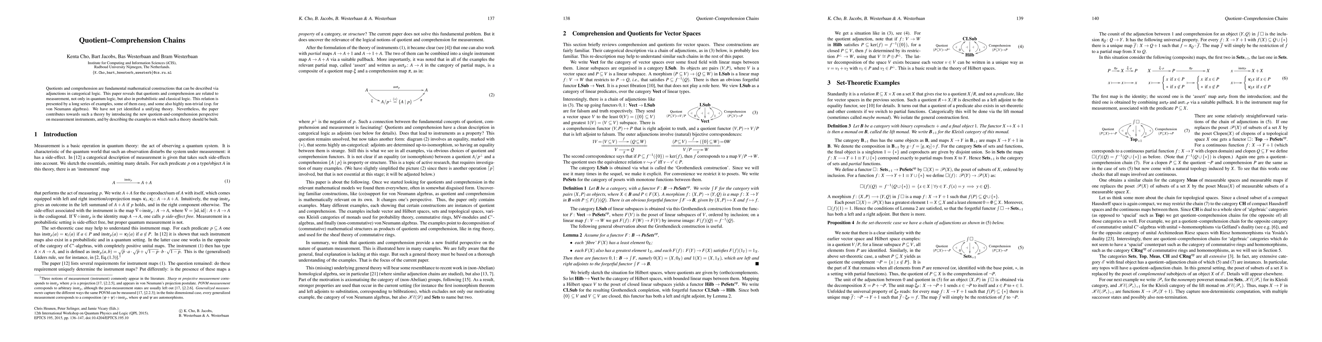 This paper explores the connection between quotients, comprehension, and measurement in quantum, probabilistic, and classical logic, introducing a new quotient-and-comprehension perspective on measurement instruments. It contributes to building a unifying theory but highlights the need for further research.