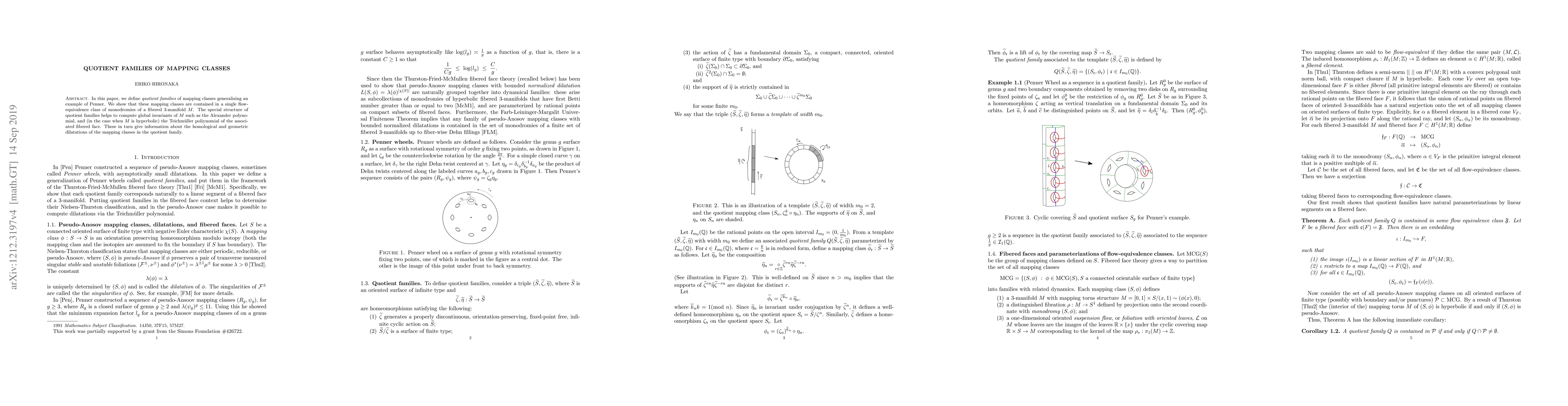 Researchers develop a method to categorize pseudo-Anosov mapping classes on compact surfaces into 'quotient families' with related dynamical behavior, providing a simple way to produce families of mapping classes with bounded dilatation and computable invariants.