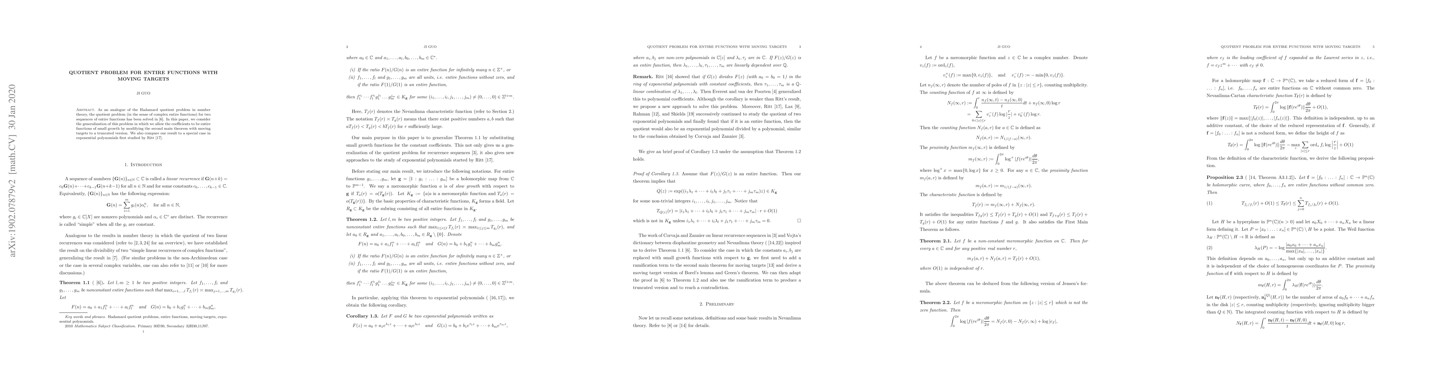 Researchers solved a quotient problem for entire functions with variable coefficients, extending a solution to non-constant functions, and compared their result to a special case of exponential polynomials.