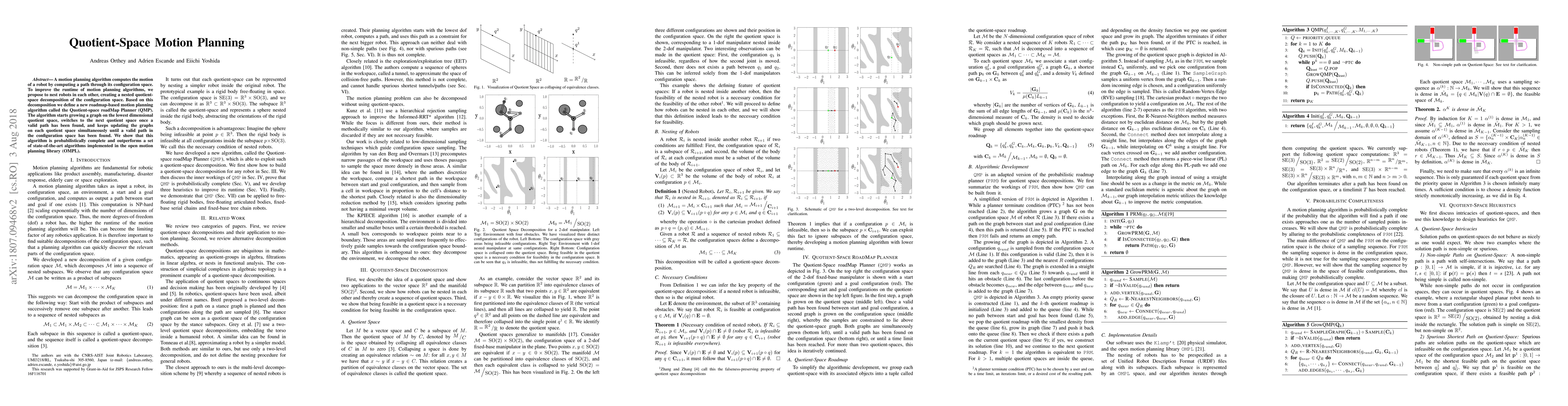 This paper proposes a new motion planning algorithm called Quotient-space roadMap Planner (QMP) that nests robots within each other to create a nested quotient-space decomposition of the configuration space, leading to improved runtime performance compared to existing algorithms. The QMP algorithm grows a graph on the lowest dimensional quotient space and updates graphs simultaneously across all quotient spaces until a valid path is found.