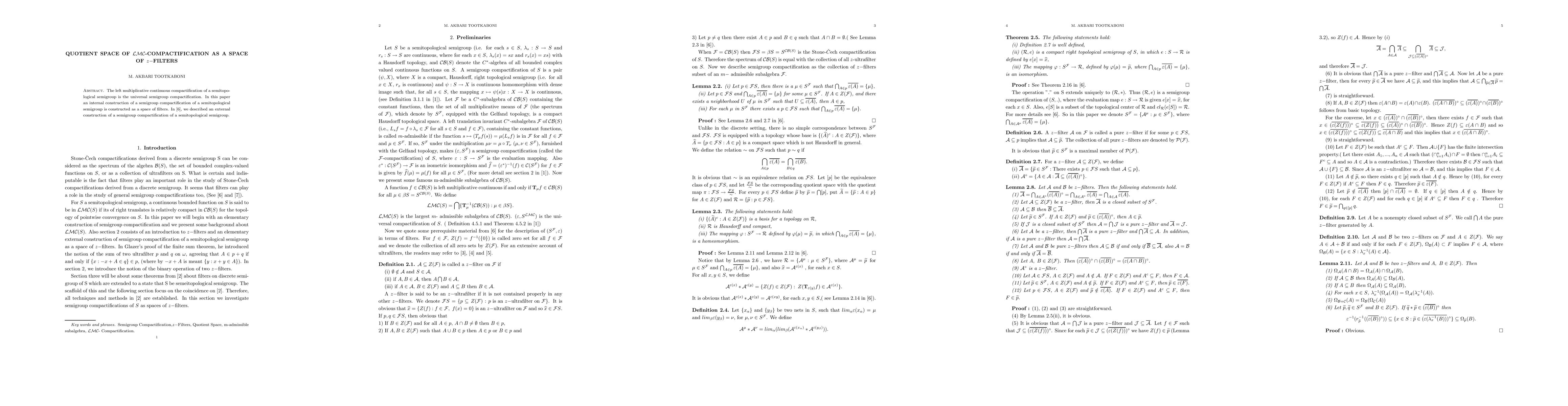 This paper constructs a new internal semigroup compactification of a semitopological semigroup as a space of $z$-filters, contrasting with an external construction previously described in \cite{Akbari}. The focus is on the quotient space of the $\mathcal{LMC}$-compactification.