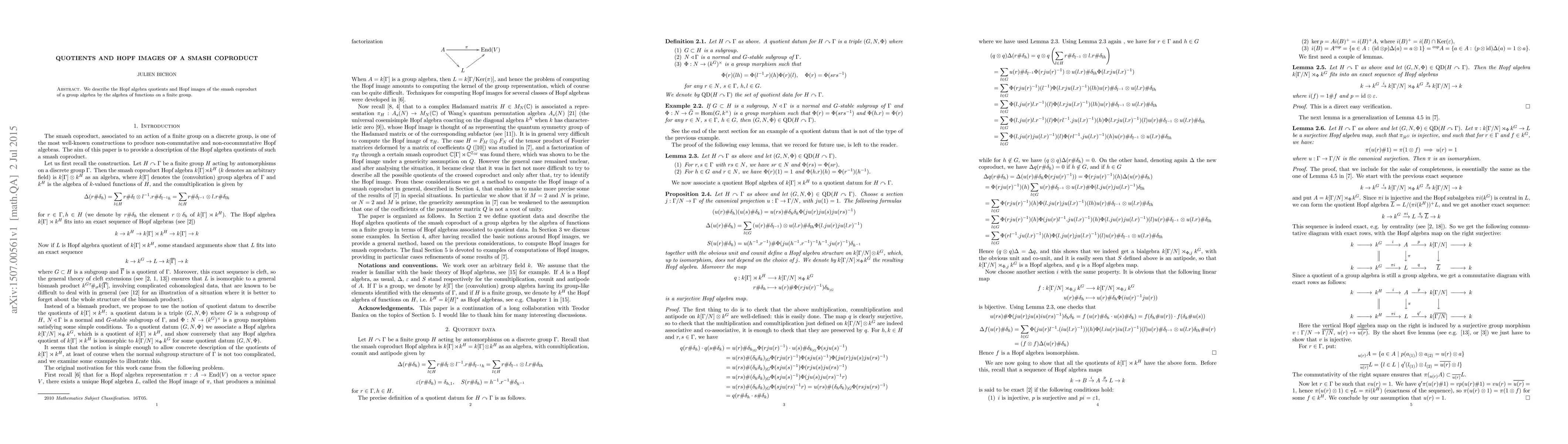 Summary: This paper investigates the Hopf algebra quotients and Hopf images resulting from the smash coproduct of a group algebra with the algebra of functions on a finite group, providing insights into the structure and properties of these algebraic constructs.