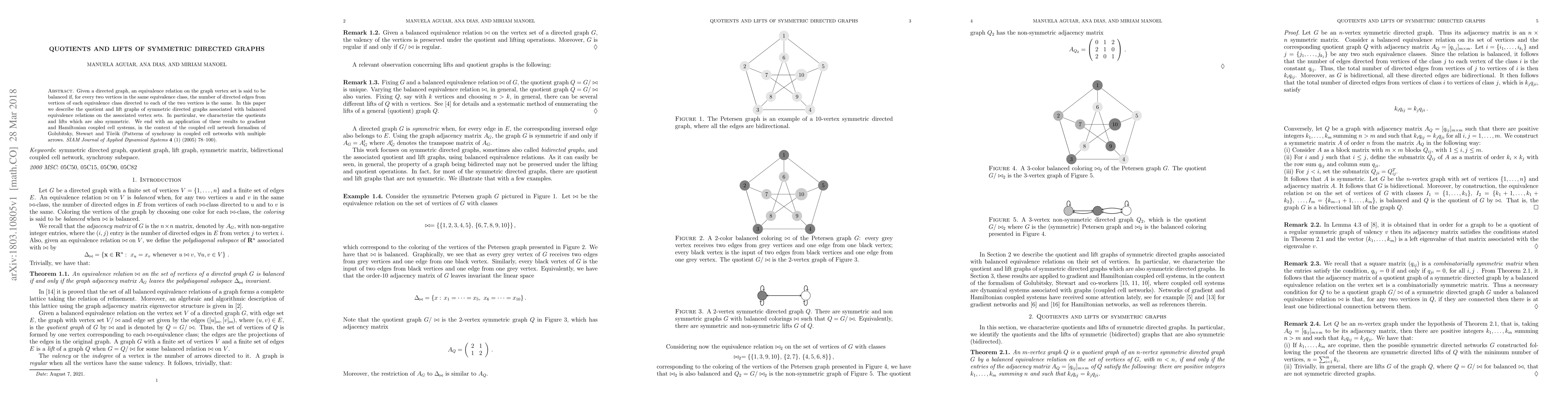 This paper explores the quotient and lift graphs of symmetric directed graphs under balanced equivalence relations, characterizing those that remain symmetric. It applies these findings to gradient and Hamiltonian coupled cell systems within the coupled cell network formalism.