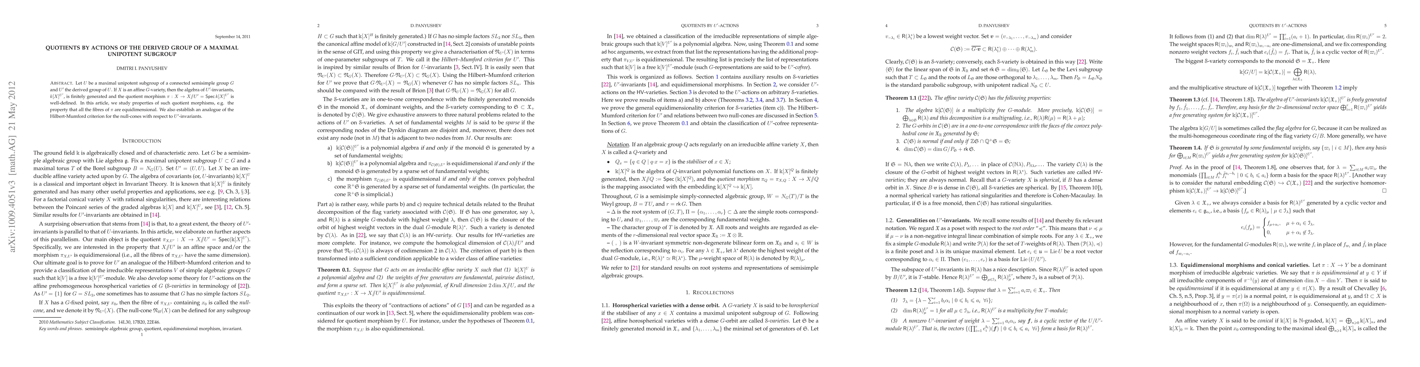 This paper investigates quotients by the derived group of a maximal unipotent subgroup $U'$ in a connected semisimple group $G$. It demonstrates that the algebra of $U'$-invariants on an affine $G$-variety $X$ is finitely generated, and proves the well-definedness of the quotient morphism $\pi: X \to X//U'$, including properties like equidimensionality of its fibers.