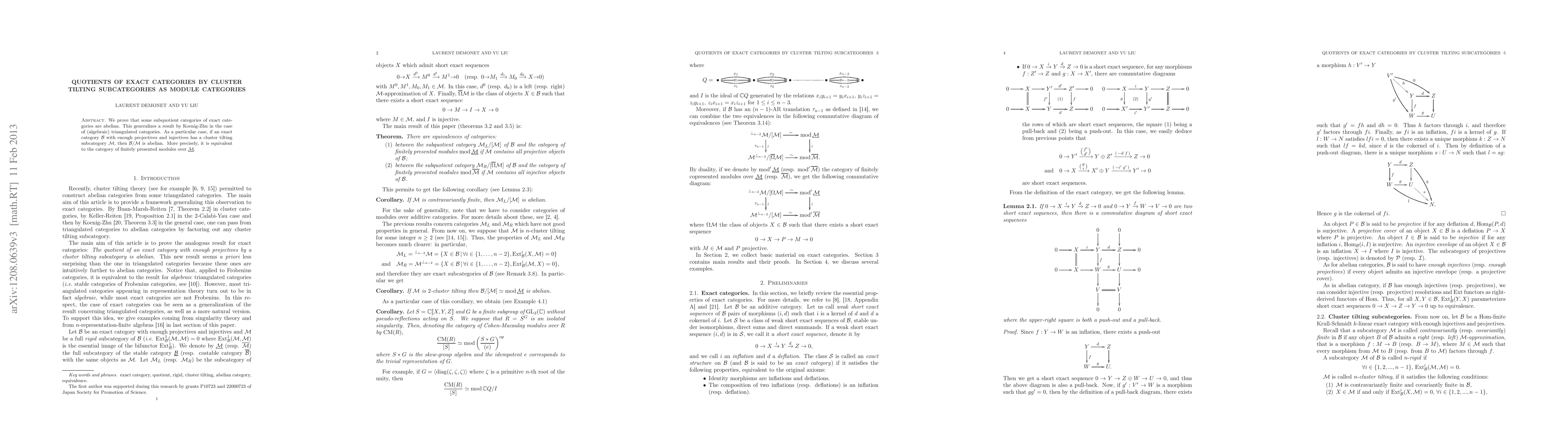 This paper proves that certain subquotient categories of exact categories are abelian, generalizing a previous result for triangulated categories. Specifically, if an exact category B has a cluster tilting subcategory M, then B/M is abelian and equivalent to the category of finitely presented modules over the stable category of M.