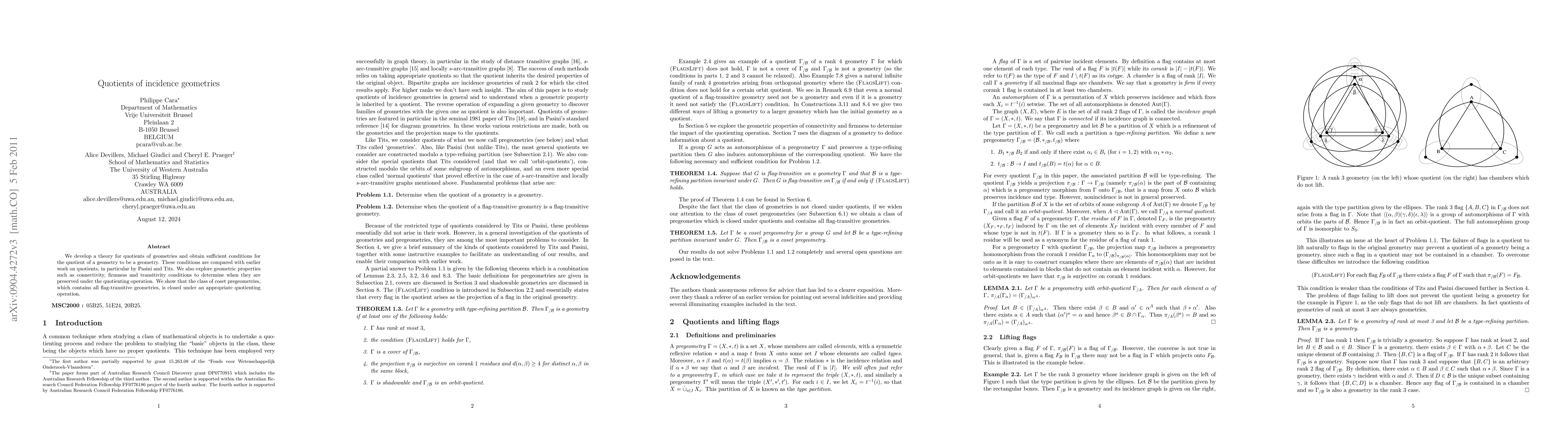 We develop a theory for quotients of geometries and obtain sufficient conditions for the quotient of a geometry to be a geometry. These conditions are compared with earlier work on quotients, in particular by Pasini and Tits. We also explore geometric properties such as connectivity, firmness and transitivity conditions to determine when they are preserved under the quotienting operation. We show that the class of coset pregeometries, which contains all flag-transitive geometries, is closed under an appropriate quotienting operation.