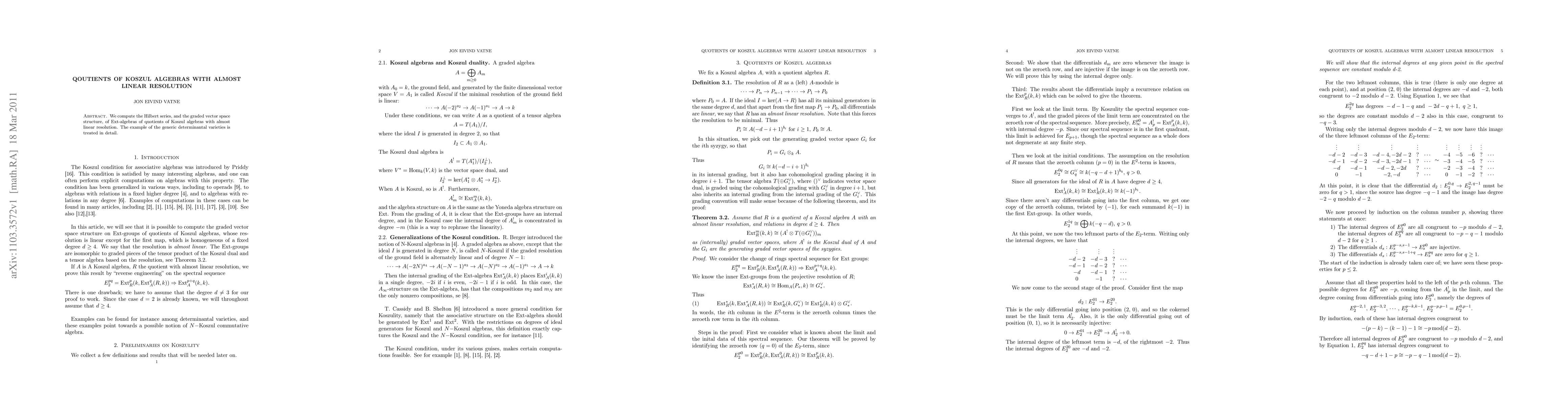 We compute the Hilbert series, and the graded vector space structure, of Ext-algebras of quotients of Koszul algebras with almost linear resolution. The example of the generic determinantal varieties is treated in detail.
