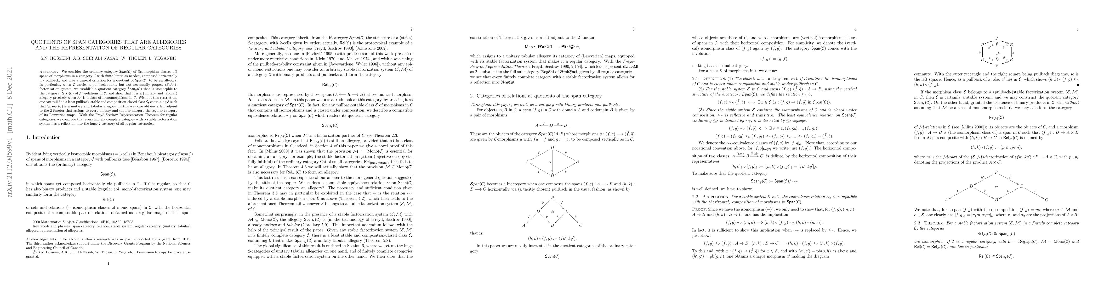 This paper provides a criterion for quotients of span categories to form allegories, showing that under a specific factorization system, these quotients correspond to M-relations in C. It also constructs a left adjoint to the 2-functor from allegories to regular categories, ultimately proving the representation of regular categories via the Freyd-Scedrov theorem.