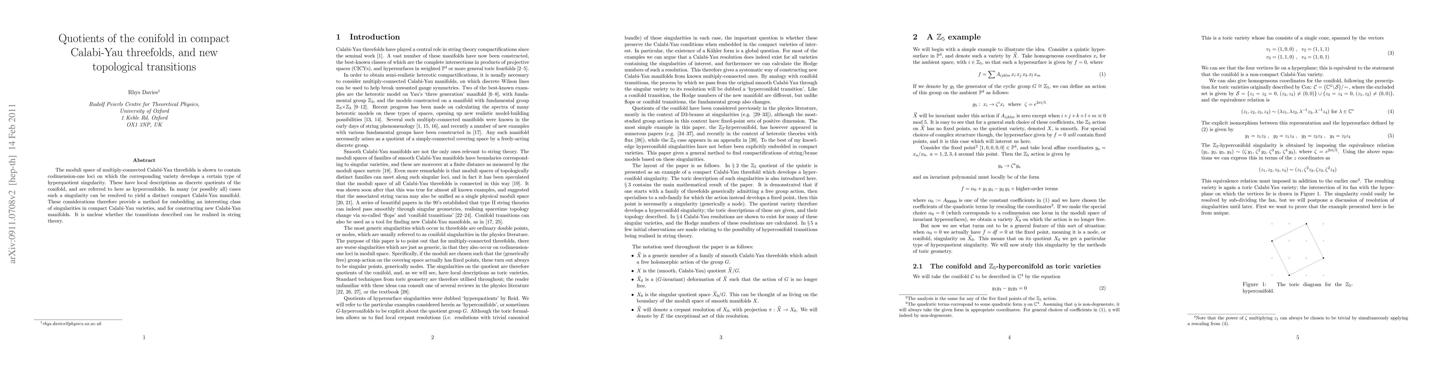 The paper explores how hyperconifold singularities in multiply-connected Calabi-Yau threefolds can be resolved to form distinct compact Calabi-Yau manifolds, offering a new method for constructing such varieties and topological transitions. The realization of these transitions within string theory remains uncertain.