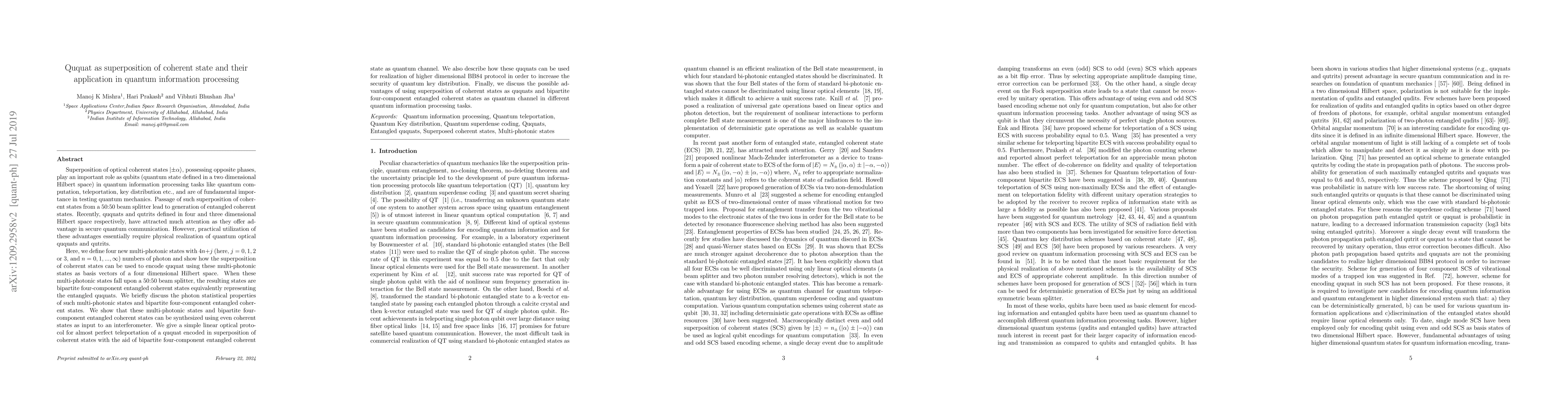 This paper introduces four new multi-photonic states (MPS) to encode ququats in a four-dimensional Hilbert space, demonstrating their use in generating bipartite four-component entangled coherent states (BFECS) via a 50:50 beam splitter. It also proposes a linear optical protocol for ququat teleportation using these MPS and BFECS, and discusses their potential for enhancing security in quantum key distribution.