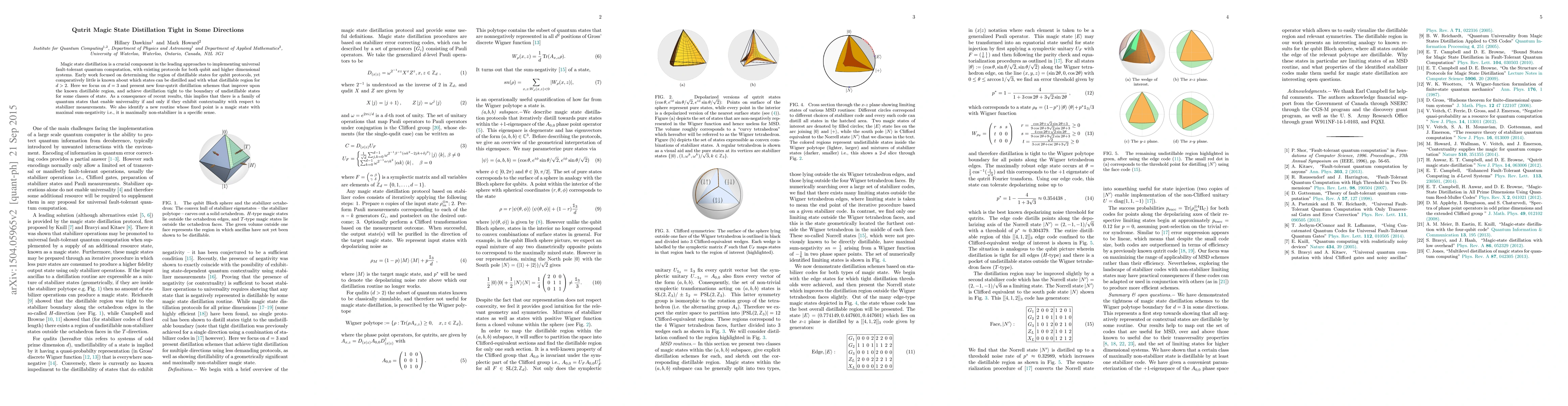 This paper presents new four-qutrit distillation schemes that enhance the known distillable region for qutrit systems, achieving tight bounds for certain classes of states. It also identifies a new routine leading to a magic state with maximal sum-negativity, implying a connection between quantum universality and contextuality.