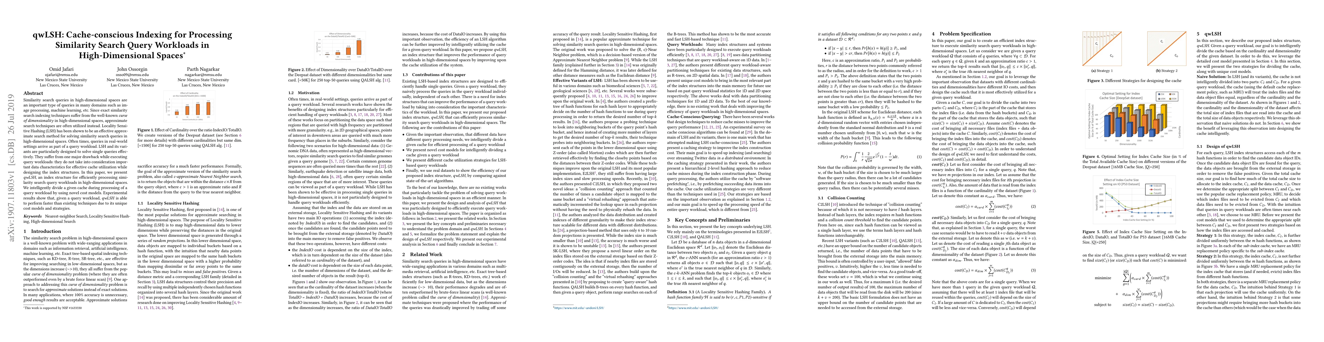 This paper introduces qwLSH, an index structure designed to efficiently handle similarity search query workloads in high-dimensional spaces by optimizing cache utilization. Unlike traditional LSH methods, qwLSH employs novel cost models to intelligently allocate cache, resulting in faster query processing times as demonstrated by experimental results.