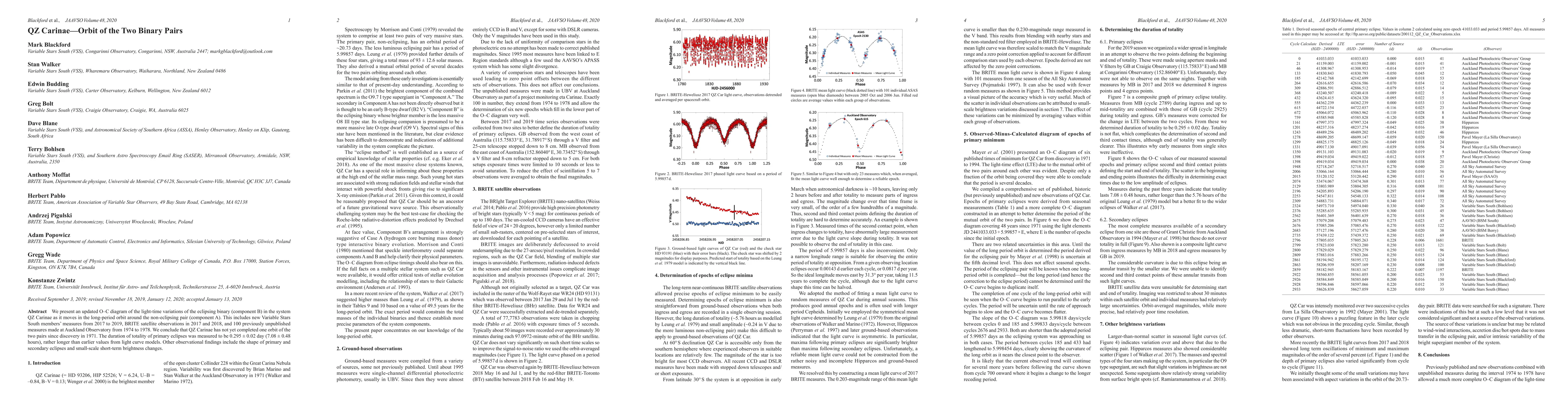 The QZ Carinae binary system has not completed one orbit since its discovery in 1971, with new measurements revealing a longer primary eclipse duration than previously thought. The study provides updated observations of the system's eclipses and brightness changes.