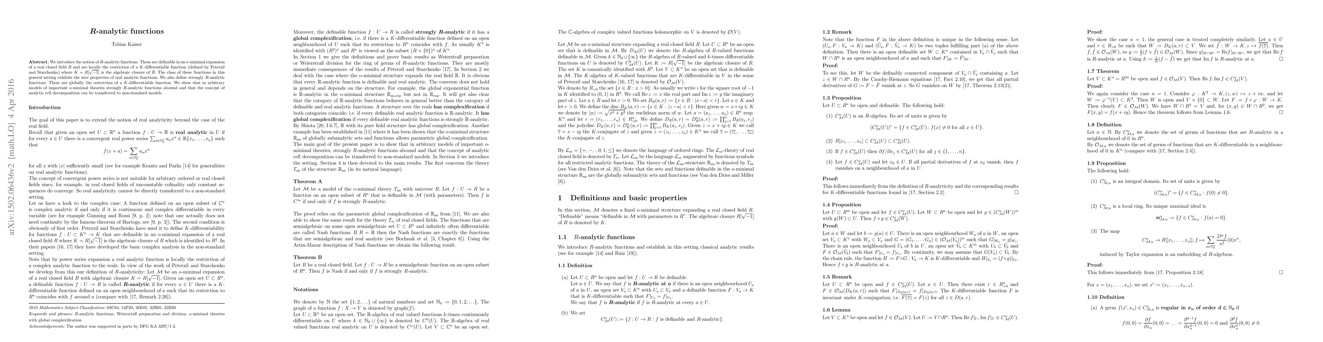 This paper introduces $R$-analytic functions, which are locally restrictions of $K$-differentiable functions in an o-minimal expansion of a real closed field $R$, and explores their properties akin to real analytic functions. It also defines strongly $R$-analytic functions, which are globally restrictions of $K$-differentiable functions, and demonstrates their prevalence in o-minimal theories.