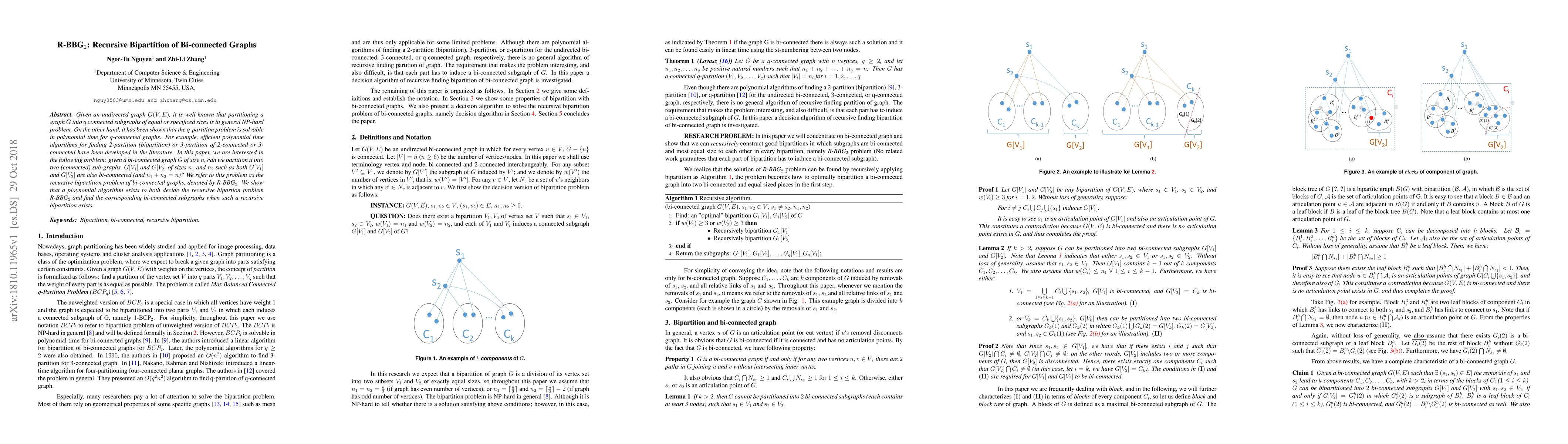 Researchers have developed a polynomial algorithm to solve the recursive bipartition problem of bi-connected graphs, which involves partitioning a graph into two connected subgraphs of equal size while ensuring both subgraphs remain bi-connected.