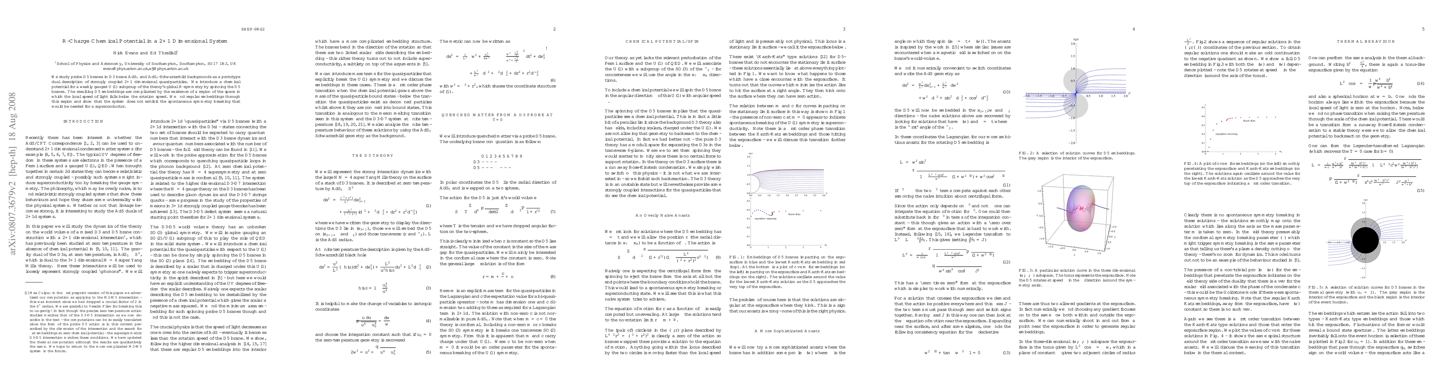 We study probe D5 branes in D3 brane AdS_5 and AdS_5-Schwarzschild backgrounds as a prototype dual description of strongly coupled 2+1 dimensional quasi-particles. We introduce a chemical potential for a weakly gauged U(1) subgroup of the theory's global R-symmetry by spinning the D5 branes. The resulting D5 embeddings are complicated by the existence of a region of the space in which the local speed of light falls below the rotation speed. We find regular embeddings through this region and show that the system does not exhibit the spontaneous symmetry breaking that would be needed for a superconductor.