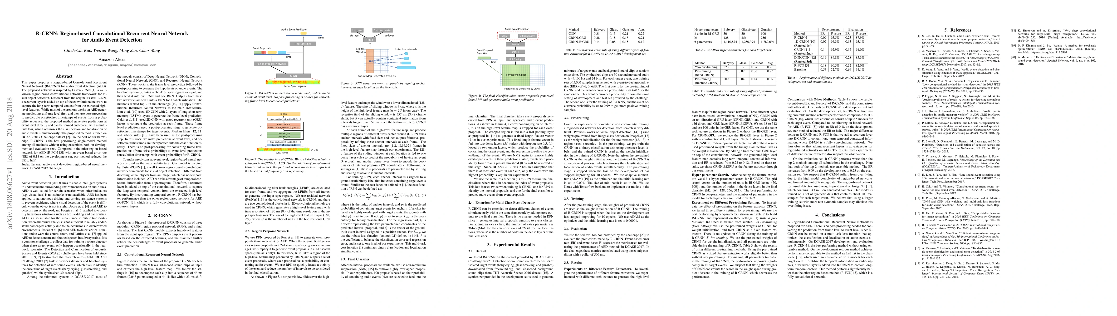 The paper introduces R-CRNN, a Region-based Convolutional Recurrent Neural Network for audio event detection, which combines Faster-RCNN with a recurrent layer to capture temporal context. Unlike frame-level detection methods, R-CRNN directly predicts events and optimizes classification and localization simultaneously, achieving superior performance on the DCASE 2017 dataset.