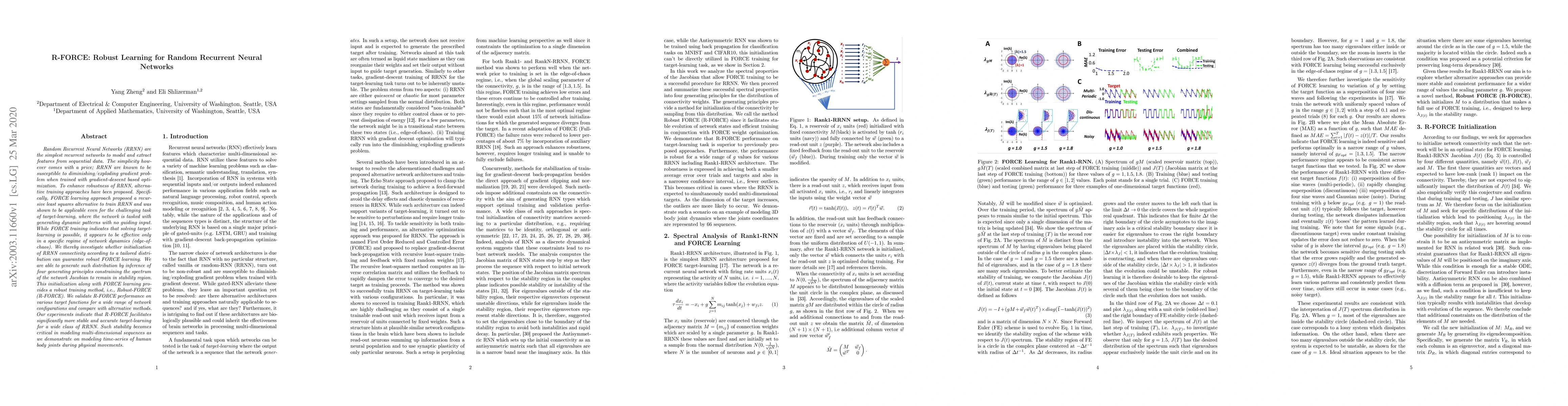 Random Recurrent Neural Networks (RRNN) are the simplest recurrent networks to model and extract features from sequential data. The simplicity however comes with a price; RRNN are known to be susceptible to diminishing/exploding gradient problem when trained with gradient-descent based optimization. To enhance robustness of RRNN, alternative training approaches have been proposed. Specifically, FORCE learning approach proposed a recursive least squares alternative to train RRNN and was shown to be applicable even for the challenging task of target-learning, where the network is tasked with generating dynamic patterns with no guiding input. While FORCE training indicates that solving target-learning is possible, it appears to be effective only in a specific regime of network dynamics (edge-of-chaos). We thereby investigate whether initialization of RRNN connectivity according to a tailored distribution can guarantee robust FORCE learning. We are able to generate such distribution by inference of four generating principles constraining the spectrum of the network Jacobian to remain in stability region. This initialization along with FORCE learning provides a robust training method, i.e., Robust-FORCE (R-FORCE). We validate R-FORCE performance on various target functions for a wide range of network configurations and compare with alternative methods. Our experiments indicate that R-FORCE facilitates significantly more stable and accurate target-learning for a wide class of RRNN. Such stability becomes critical in modeling multi-dimensional sequences as we demonstrate on modeling time-series of human body joints during physical movements.