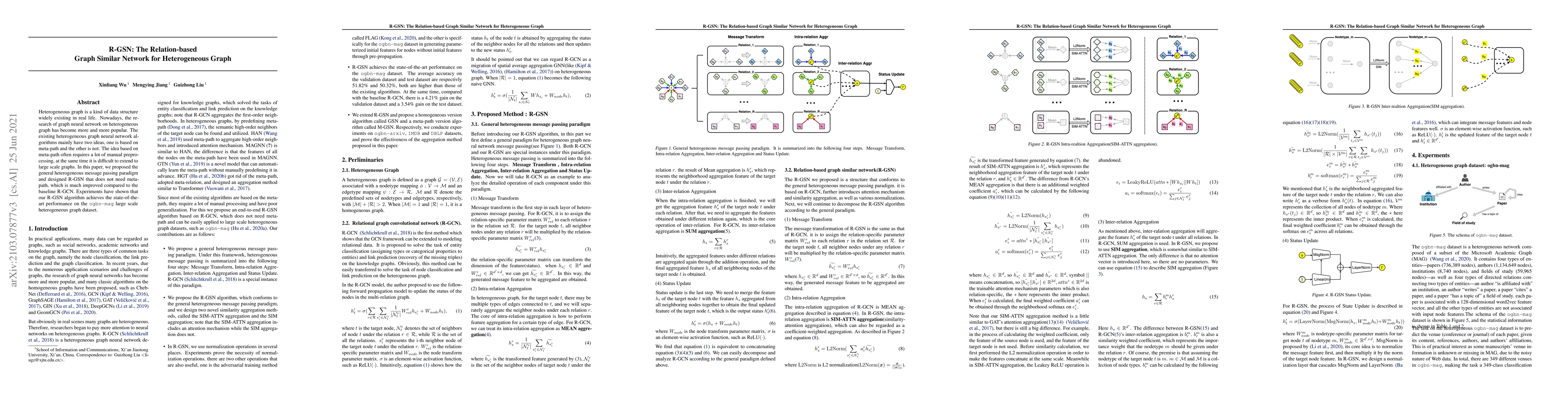 The paper introduces R-GSN, a relation-based graph similar network for heterogeneous graphs that does not rely on meta-paths, addressing the limitations of existing methods. R-GSN achieves state-of-the-art performance on large scale heterogeneous graph datasets, demonstrating its effectiveness.