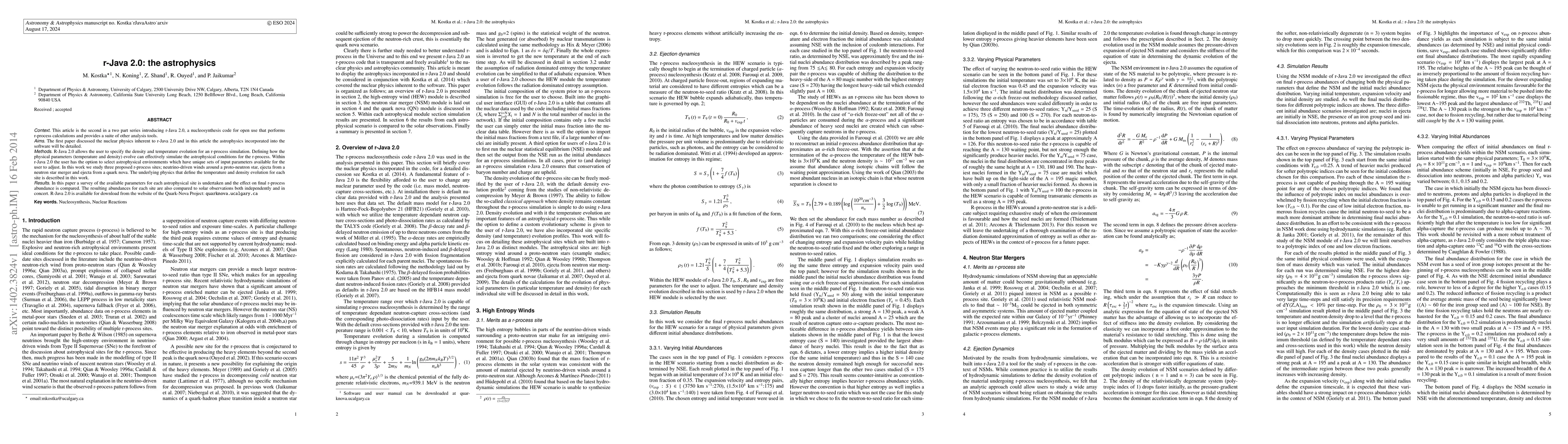 This paper details the astrophysical aspects integrated into r-Java 2.0, a nucleosynthesis code for r-process calculations, and explores three r-process sites: neutrino-driven winds, neutron star mergers, and quark novae. The study compares the resulting r-process abundances for these environments to solar observations.