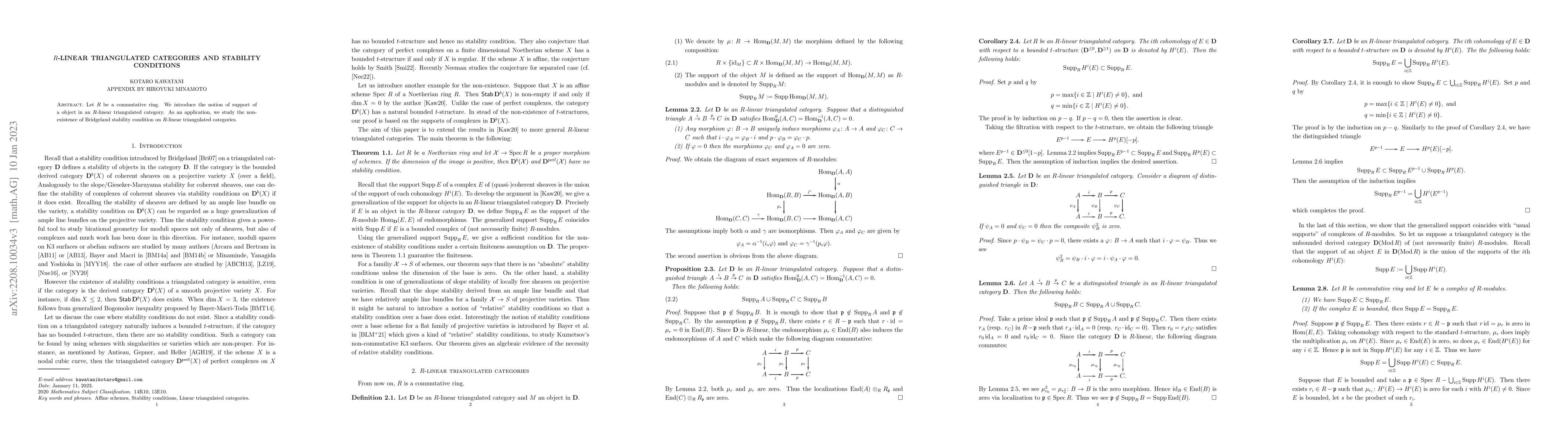 This paper introduces the concept of support for objects in $R$-linear triangulated categories and demonstrates the non-existence of Bridgeland stability conditions on such categories. The study highlights significant limitations in applying stability theory to these structures.