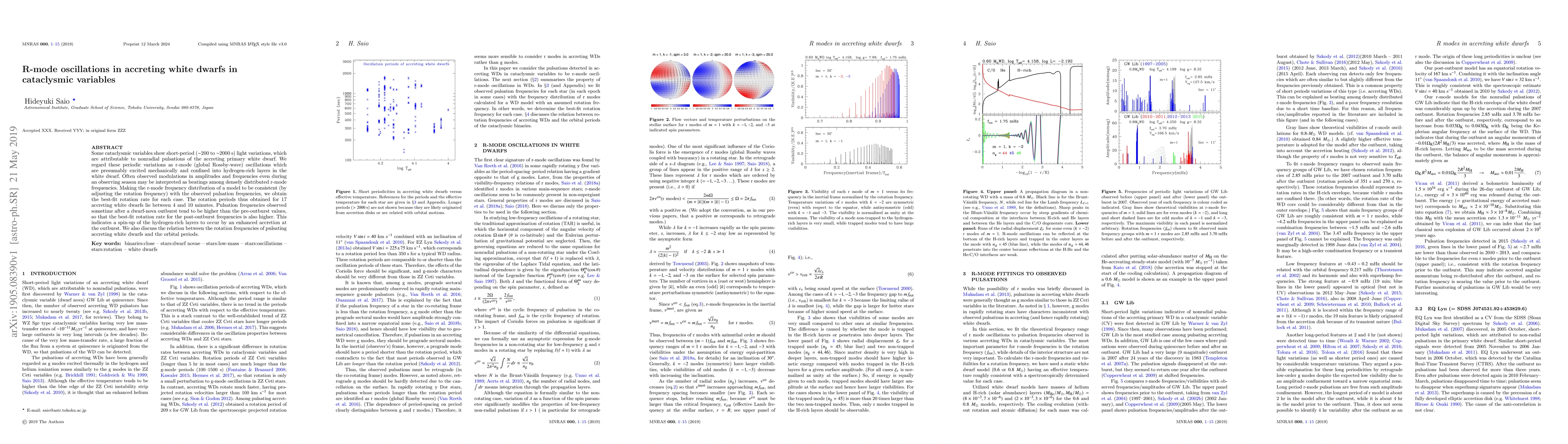 This paper investigates r-mode oscillations in accreting white dwarfs in cataclysmic variables, attributing short-period light variations to nonradial pulsations. The study finds that the best-fit rotation rates for these white dwarfs range from 4 to 10 minutes, with post-outburst frequencies indicating a spin-up due to enhanced accretion.