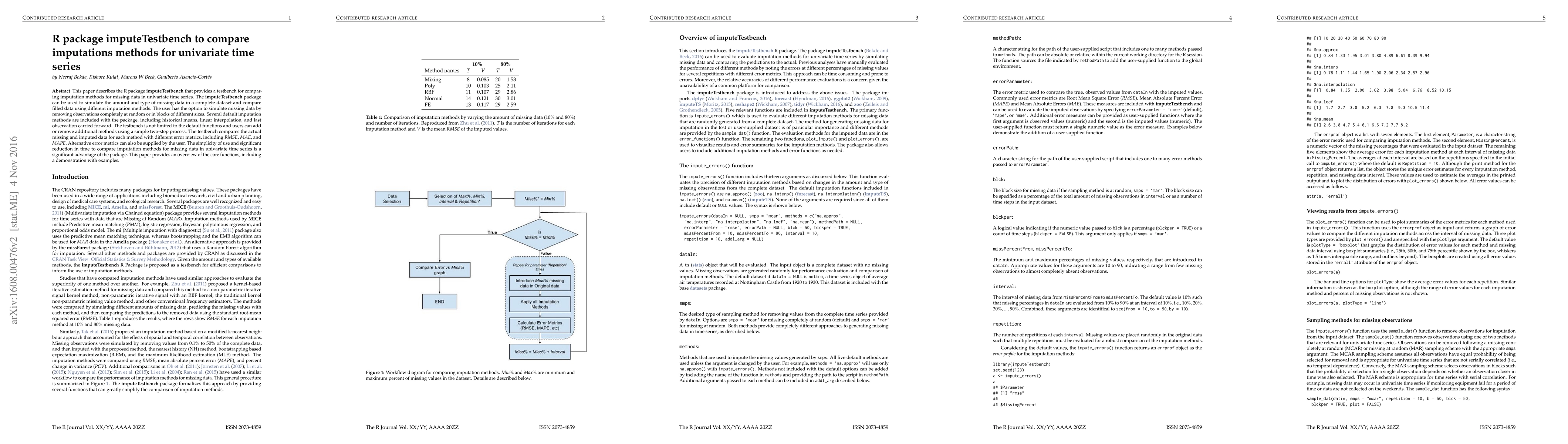 A new R package called imputeTestbench allows users to compare different methods for filling missing data in univariate time series, providing a faster and more accurate way to evaluate imputation techniques.