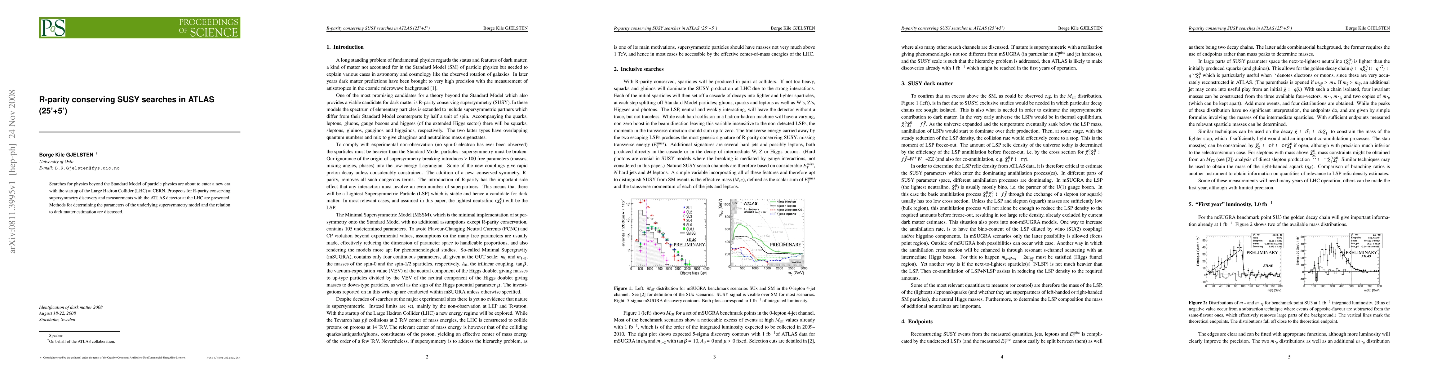 This paper explores the prospects for discovering R-parity conserving supersymmetry using the ATLAS detector at CERN's LHC, focusing on methods for determining supersymmetry model parameters and their implications for dark matter estimation.