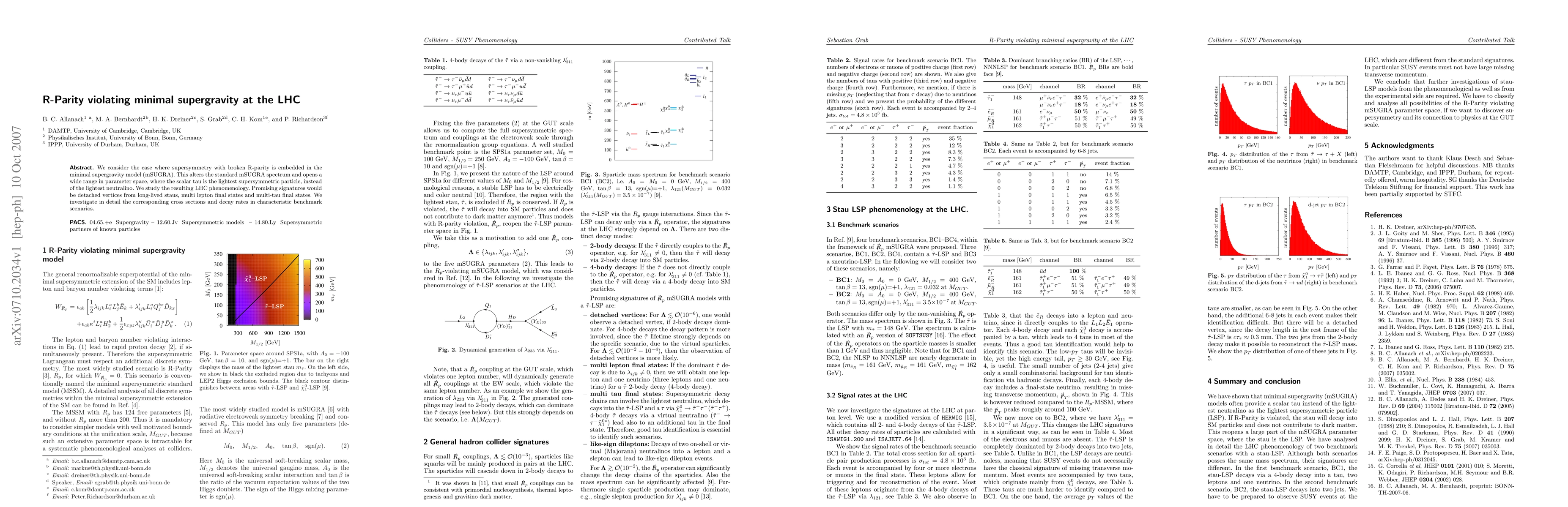 The use of the tau as a LSP in R-parity violating mSUGRA scenarios is new and opens up a large part of the parameter space that was previously unexplored.