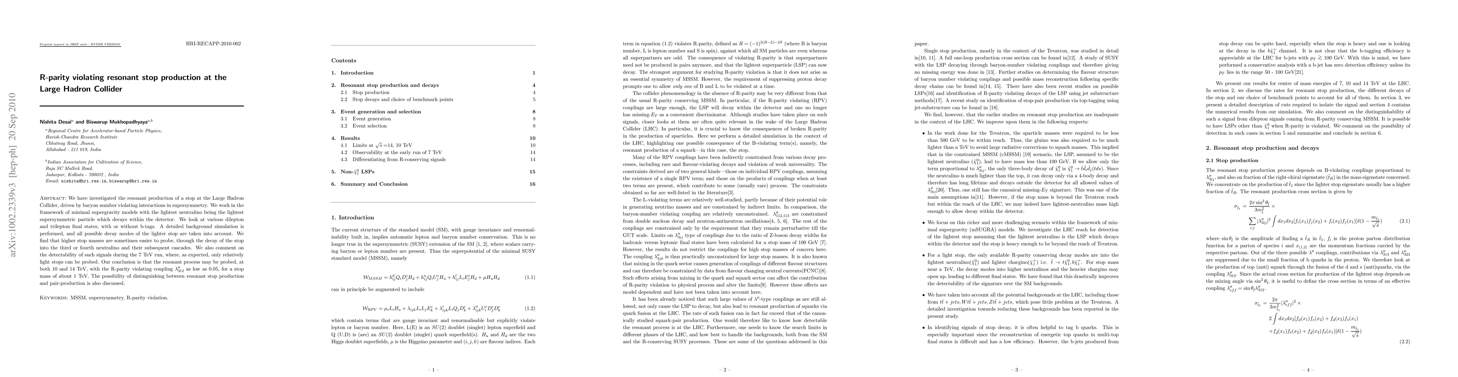 This paper investigates the resonant production of a stop at the LHC driven by baryon number violating interactions in supersymmetry, finding that higher stop masses can sometimes be easier to detect. The study concludes that R-parity violating coupling λ_{312} as low as 0.05 can be probed for a stop mass around 1 TeV at both 10 and 14 TeV energies.
